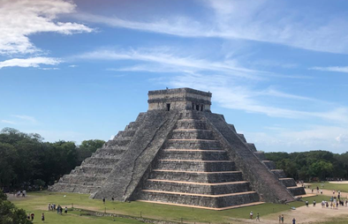 Chichén Itzá tuvo sus inicios alrededor del 600 a.C., durante el periodo Clásico Tardío, siendo contemporánea entre otros con los sitios de Uxmal, Izamal y Ek´Balam. A partir del 900 y hasta 1200 d.C., Chichén Itzá se convirtió en la principal urbe maya del norte de la Península de Yucatán, periodo durante el cual se construyeron edificios monumentales, entre ellos la pirámide dedicada a Kukulcán, conocida como El Castillo (Figura 2), y el observatorio astronómico, también denominado El Caracol. El declive de Chichén Itzá sigue siendo un tema controversial, pero algunas teorías sugieren que fue el resultado de conflictos internos entre los linajes gobernantes, quienes fundaron nuevas ciudades como Mayapan. Al momento de la llegada de los españoles, la ciudad ya había sido casi abandonada, más no el Cenote Sagrado que se convirtió en un importante centro de peregrinaje, por lo que el primer obispo de Yucatán, Fray Diego de Landa, lo llegó a comparar con Roma y Jerusalem.