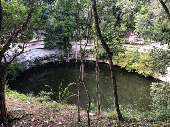 En idioma maya, el nombre Chichén Itzá significa «boca del pozo de los itzáes», el cual hace referencia al Cenote Sagrado, una estructura geológica de disolución y colapso (Figura 4a). Para los mayas este sitio representaba la entrada al inframundo en donde residía Chaac, el dios de la lluvia (Figura 4b). Se ha reportado que la práctica de sacrificios humanos en el cenote, en su mayoría infantes entre 6 y 12 años, se relaciona con rituales de petición de lluvia especialmente en temporadas de sequía. Chichén Itzá también alude a los llamados itzaes, señalados en las fuentes coloniales como los habitantes del sitio durante su crecimiento y apogeo.