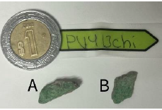 En arqueología, una de las interrogantes importantes de determinar es: ¿de dónde se obtenían las materias primas utilizadas en las sociedades del pasado? Esta información permite deducir posibles rutas comerciales, identificar si un grupo tenía el control exclusivo sobre una fuente de materia prima o localizar talleres donde se realizaban objetos específicos. En el caso del jade maya se ha propuesto que provenía de afloramientos ubicados en la cuenca del río Motagua, Guatemala. Y aunque existen algunos trabajos previos de caracterización de “piedras verdes” recuperadas en las grandes urbes mayas de Yucatán, los estudios de comparación con el jade guatemalteco son escasos. De esta forma, en la Facultad de Ciencias de la Tierra, UANL, se planteó el desarrollo de un proyecto de tesis de licenciatura con el apoyo del Instituto Nacional de Antropología e Historia – Mérida. Este consistió en la determinación del arreglo de minerales y de la composición química de muestras de “piedras verdes” recuperadas  en la zona arqueológica de Chichén Itzá (Figura 2). Este material está constituido en su totalidad por fragmentos de dimensiones centimétricas, sin utilidad para la exhibición y que forman parte de las piezas recuperadas en las dos temporadas de exploración del Cenote Sagrado de 1967 y 1968, encabezadas por el arqueólogo y antropólogo mexicano Román Piña Chan (Figura 3).
