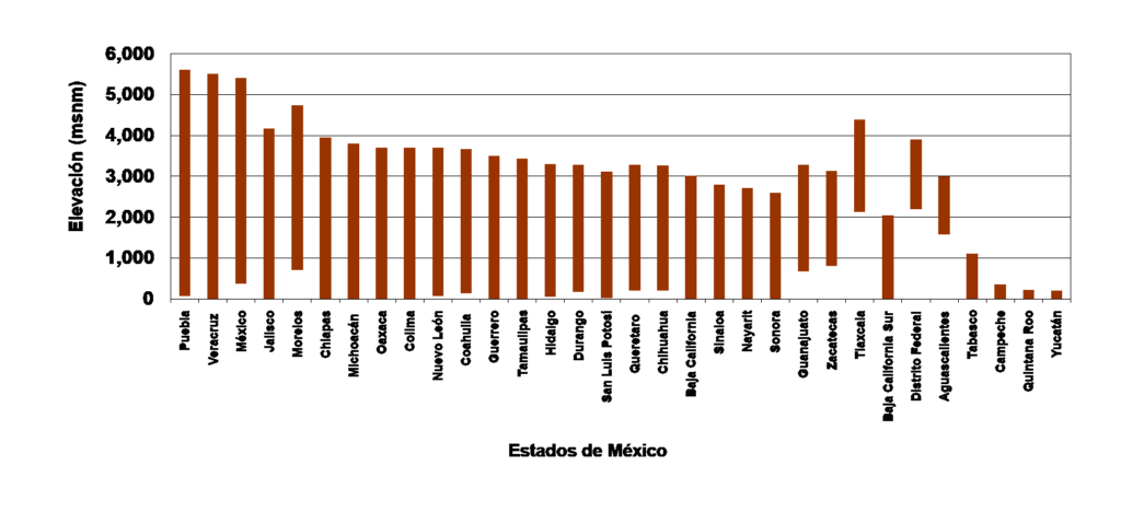 La relación entre elevación y diversidad biológica indica que a nivel de ecorregiones, aquellas con mayor rango de elevación y superficie tienden a tener más tipos de vegetación primaria; sin embargo, la ecorregión correspondiente a la Sierra Madre Oriental en México, presenta el mayor número (24) de tipos de vegetación natural, no obstante que sólo abarca 4,796,070 hectáreas (ubicada en el lugar 13 por su tamaño a nivel nacional) y un gradiente altitudinal de los 486 a los 3,700 msnm (Koleff et al., 2009).