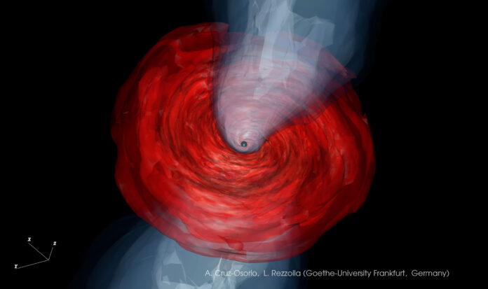 En este proceso, se simula un agujero negro rotando en el centro rodeado por plasma, y se integran las ecuaciones de Einstein y Maxwell, dando lugar a lo que los investigadores llaman magneto hidrodinámica relativista.