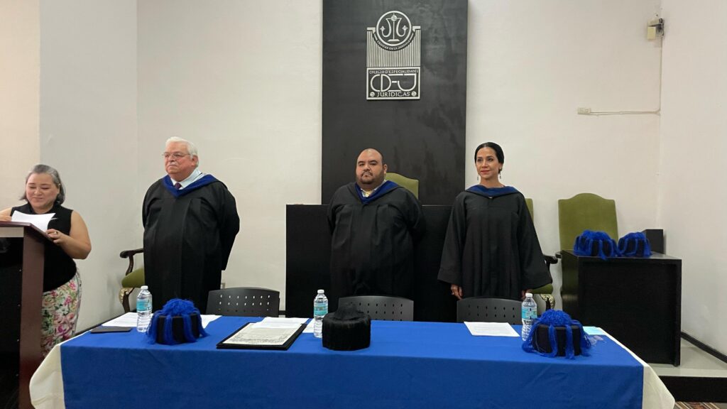 En reconocimiento a su destacada trayectoria como abogado y su compromiso con la justicia social, el Colegio de Especialidades Jurídicas otorgó este jueves el Doctorado Honoris Causa a Cristhian Alan Guerrero Aguilar.