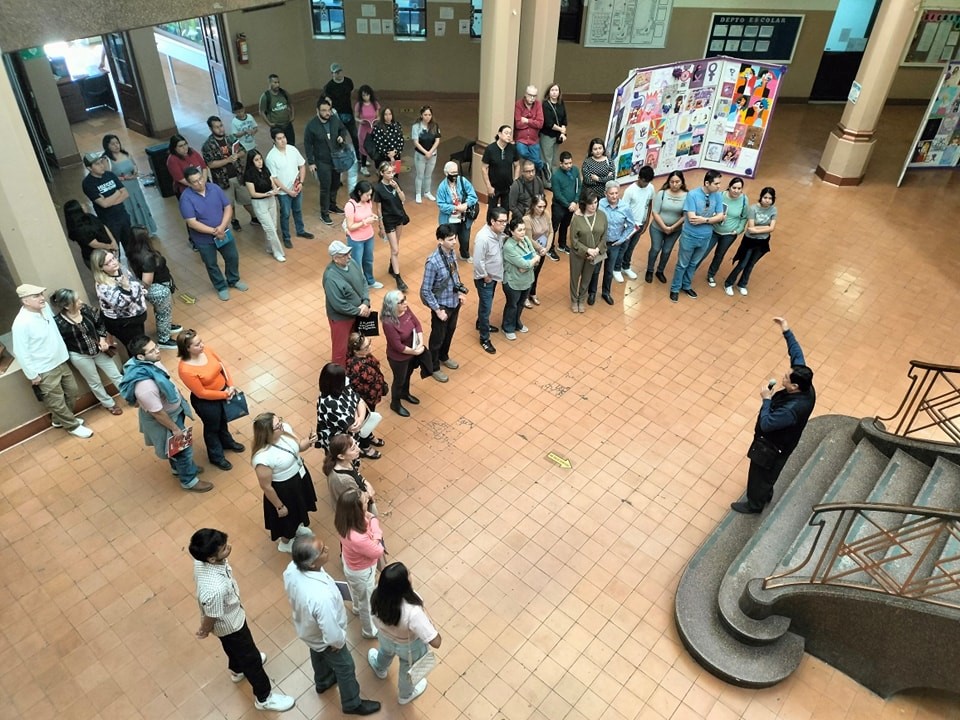 El evento, atendido por poco más de 50 personas, consistió en un recorrido guiado por el emblemático edificio sede con guía a cargo del Dr. Rodrigo Ledesma Gómez, profesor investigador de la UDEM y experto en las tendencias arquitectónicas y artísticas que tiene el edificio, el cual data de 1930 como sede primera de la Escuela Industrial y Preparatoria Técnica “Álvaro Obregón”. Este inmueble es sede de la Prepa 3 desde el año 2001.