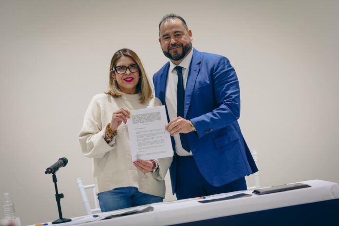 A nombre de Zagrev, Israel Cervantes Carrillo recibió la acreditación y la placa institucional, de manos de Alvarado.
