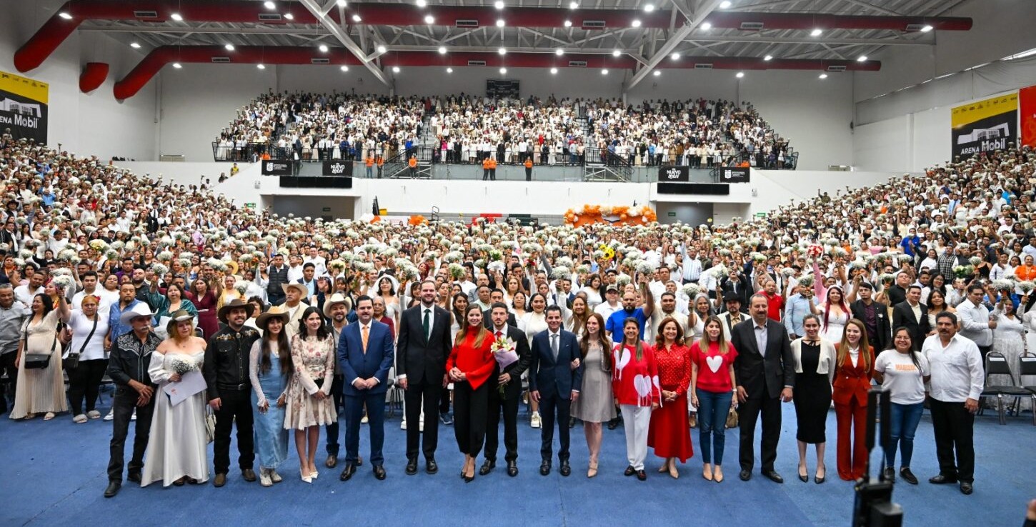 En el marco del Día del Amor y la Amistad, el Gobernador de Nuevo León, Samuel Alejandro García Sepúlveda, y Mariana Rodríguez Cantú atestiguaron la unión civil de más de 2 mil 500 parejas durante la jornada de Matrimonios Colectivos, realizada en el Gimnasio Nuevo León.