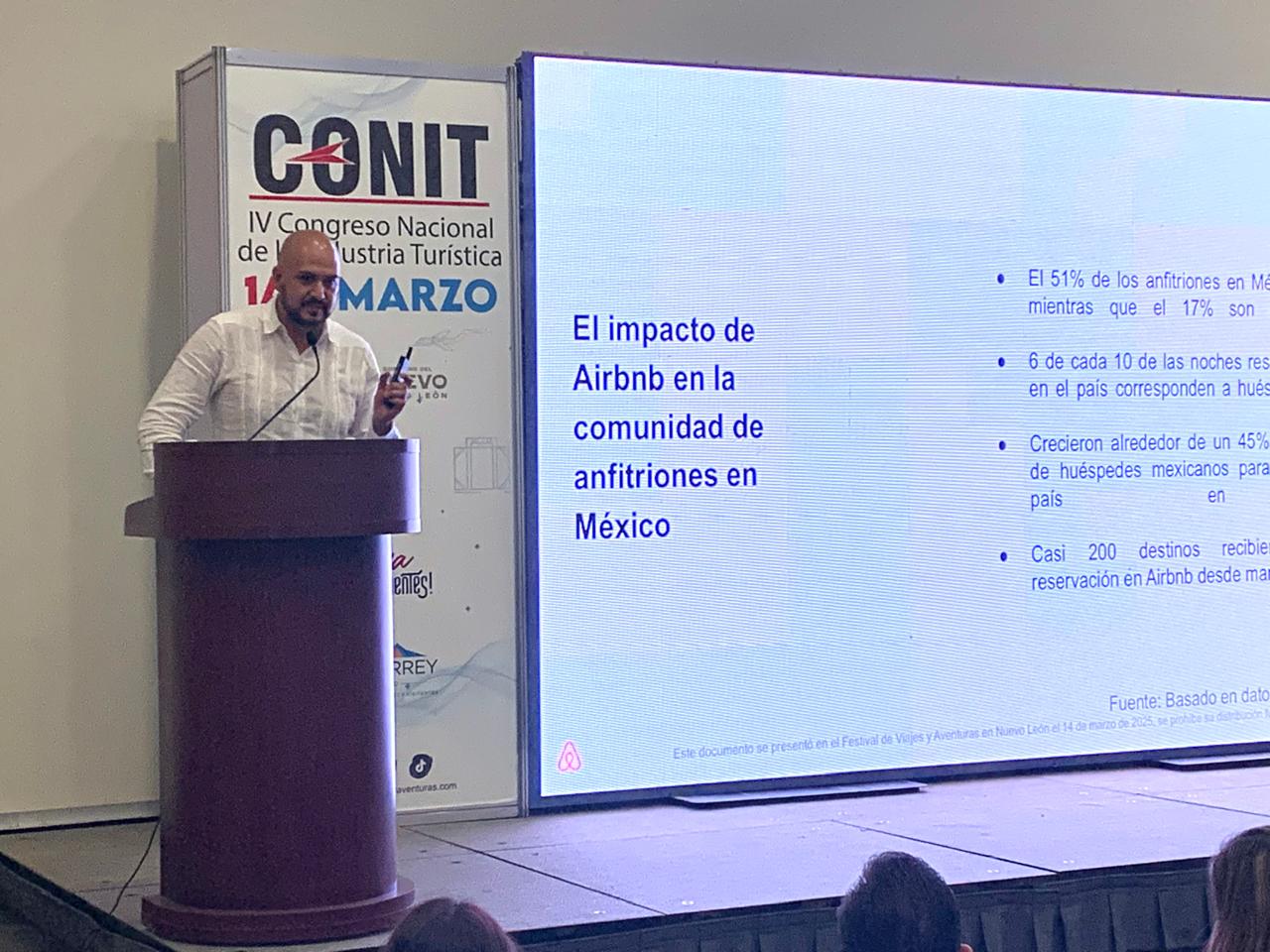 Así lo expuso Sebastián Colín, Director de Asuntos Públicos de Airbnb, durante su participación en el IV Congreso Nacional de la Industria Turística que se desarrolló en Cintermex, en el marco Expo VI Festival de Viajes y Aventuras 2025.