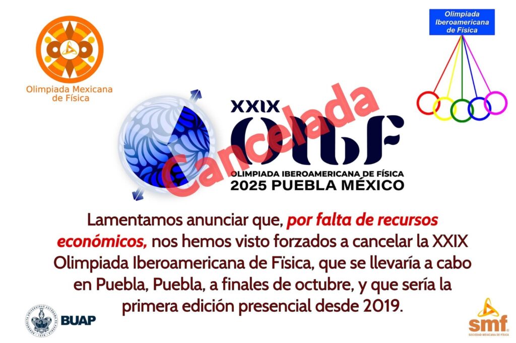 Mientras la delegación mexicana se alista para representar al país en París, otro evento importante fue cancelado: la Olimpiada Iberoamericana de Física, que se realizaría en Puebla en octubre.