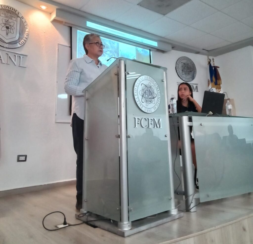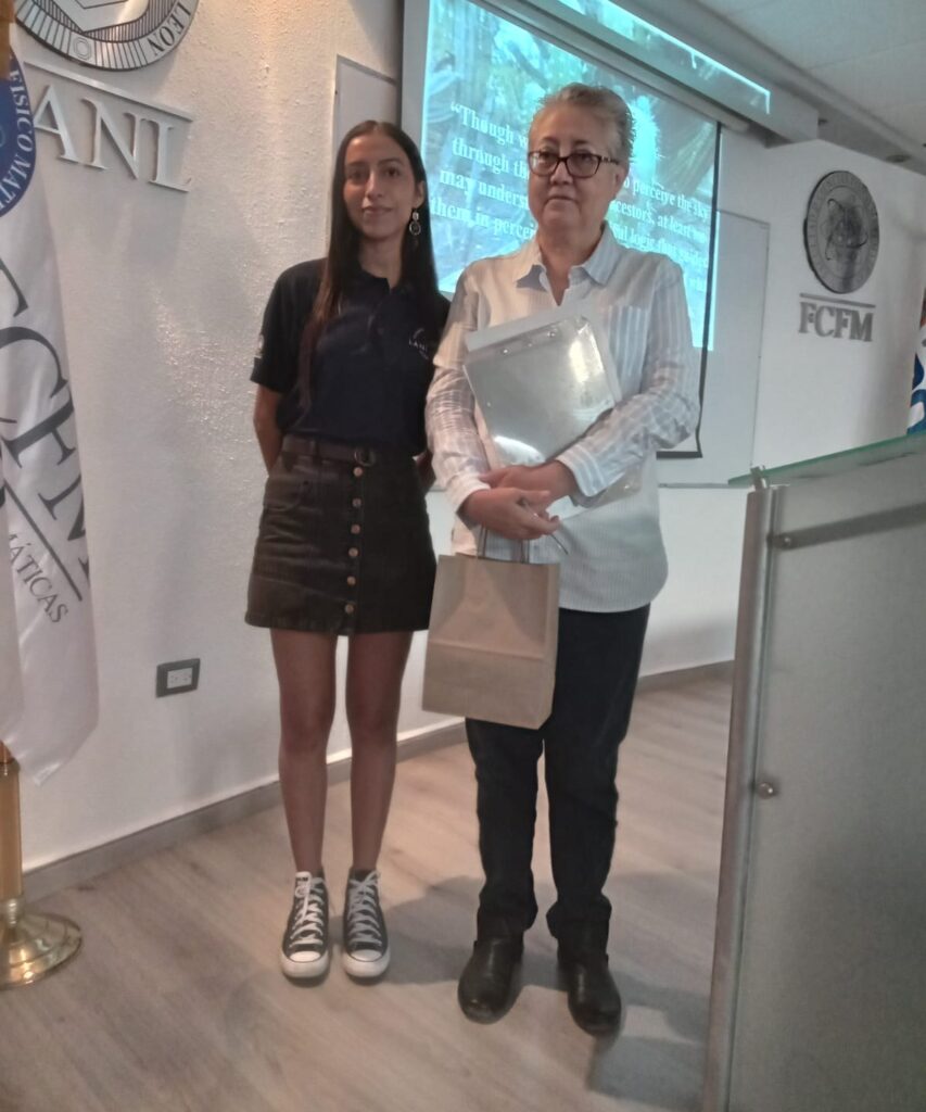 La Dra. Araceli Rivera Estrada, investigadora del Instituto Nacional de Antropología e Historia (INAH), presentó los resultados de su tesis doctoral “Percepción del paisaje entre grupos cazadores recolectores complejos en la llanura central de Nuevo León”, durante su participación en la Semana de la Astronomía, organizada por la Asociación Estudiantil de Astronomía Laniakea de la Facultad de Ciencias Físico-Matemáticas.