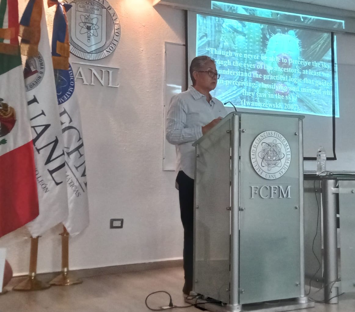 La Dra. Araceli Rivera Estrada, investigadora del Instituto Nacional de Antropología e Historia (INAH), presentó los resultados de su tesis doctoral “Percepción del paisaje entre grupos cazadores recolectores complejos en la llanura central de Nuevo León”, durante su participación en la Semana de la Astronomía, organizada por la Asociación Estudiantil de Astronomía Laniakea de la Facultad de Ciencias Físico-Matemáticas.