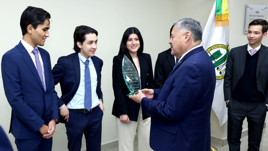 Acompañados de sus asesores, Rodrigo Medrano y Genaro Bermejo, los universitarios mostraron la presea de primer lugar al Rector de la UANL Santos Guzmán López; el Secretario General de la UANL, Mario Alberto Garza Castillo, y el coordinador de la Facultad de Derecho y Criminología, David Emmanuel Castillo Martínez.