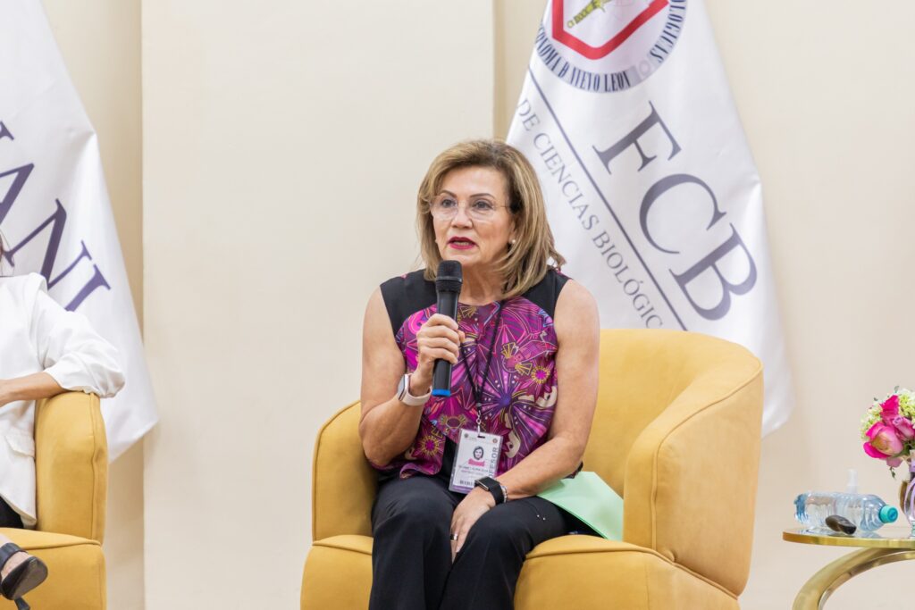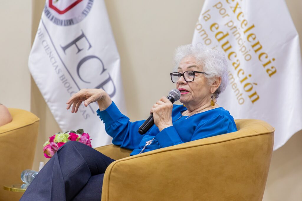 El panel contó con la participación de la Dra. Cristina Rodríguez Padilla, fundadora del Laboratorio de Inmunología y Virología de la Facultad de Ciencias Biológicas; la Dra. Patricia del Carmen Zambrano Robledo, investigadora del Centro de Investigación e Innovación en Ingeniería Aeronáutica de la Facultad de Ingeniería Mecánica y Eléctrica; y la Dra. Laura Elia Martínez Garza, fundadora del Departamento de Genética del Hospital Universitario. La moderación estuvo a cargo de la Dra. Diana Reséndez Pérez, directora de la Facultad de Ciencias Biológicas.