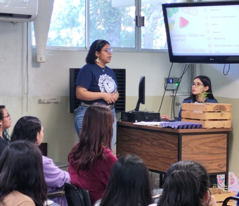 El equipo detectó la importancia de cultivar alimentos en espacios reducidos, sobre todo para familias sin acceso a patios o terrenos. Se capacitaron con estudiantes de Biología de la UANL, realizaron una actividad de formación práctica y luego replicaron el conocimiento con más de 50 compañeros.