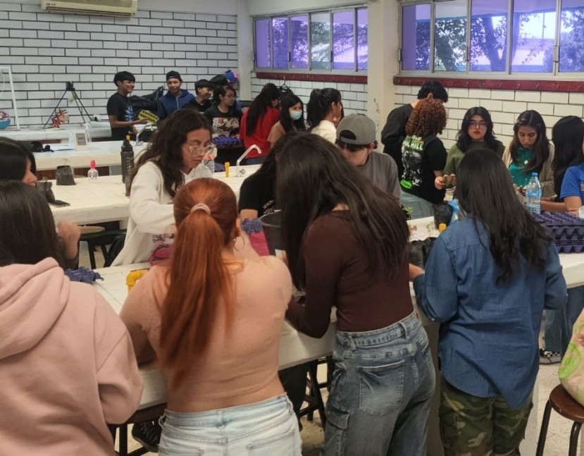 La iniciativa incluyó talleres sobre siembra en pequeños recipientes como cartones de huevo, y culminó con la creación de un mural colaborativo con apoyo del taller de arte de la misma preparatoria.