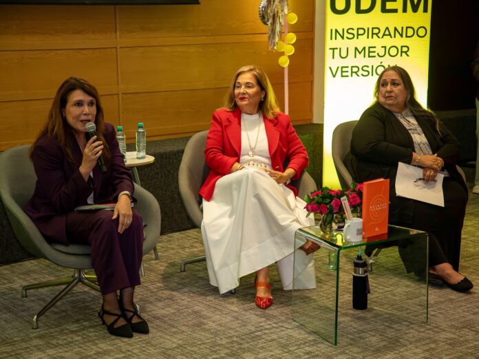 El evento se realizó este mediodía en la Sala del Claustro Universitario y contó con la participación de profesoras e investigadoras de la UDEM, además de la promotora cultural Liliana Melo de Sada, presidenta del Paseo de la Mujer Mexicana, quien moderó el panel de discusión.