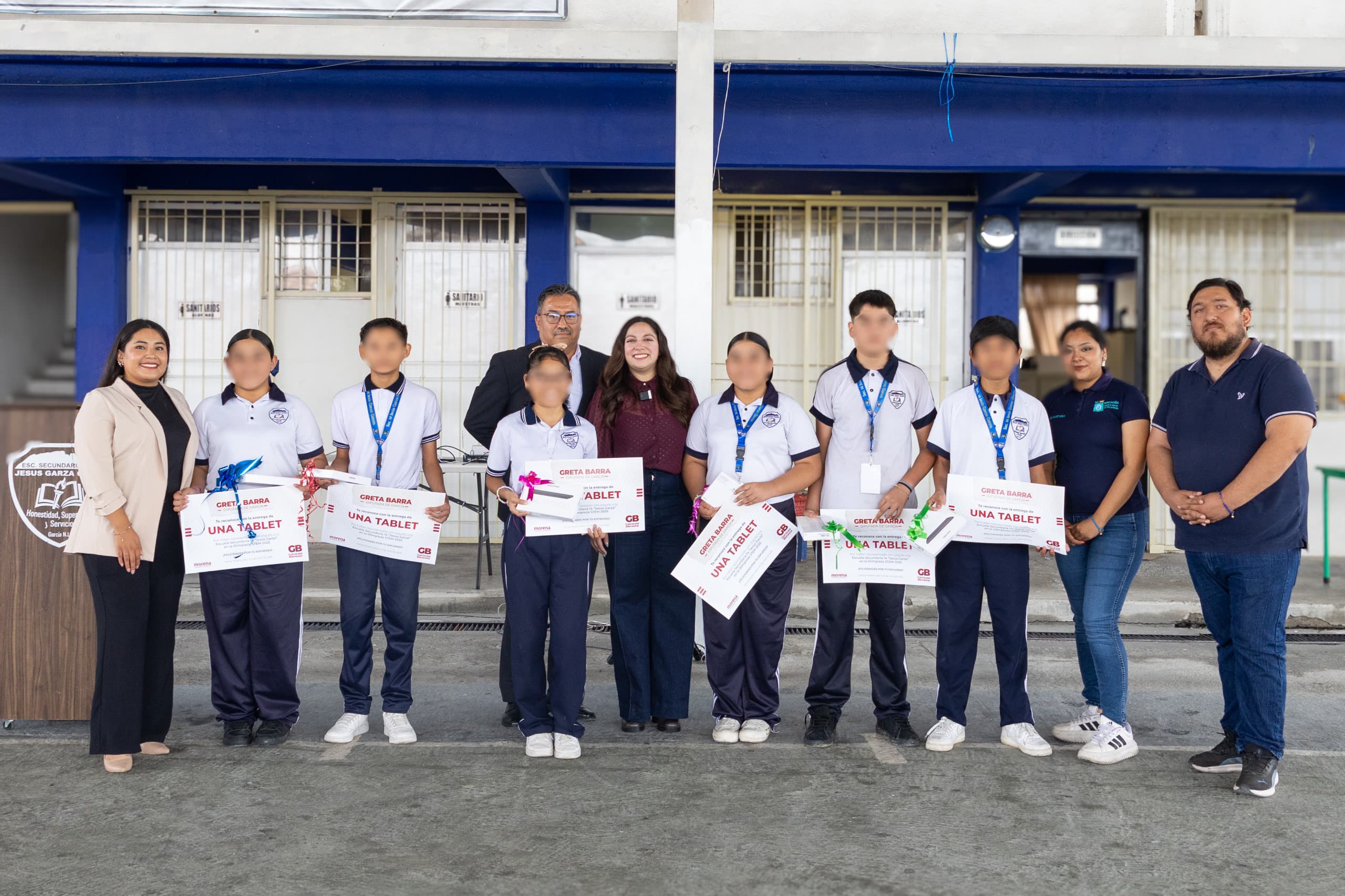 Durante el acto de reconocimiento, la legisladora de Morena entregó una tableta a cada estudiante como herramienta para impulsar su desarrollo académico.