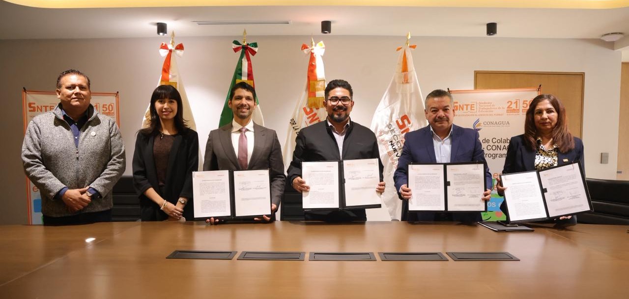 Las Secciones 21 y 50 del Sindicato Nacional de Trabajadores de la Educación (SNTE) firmaron un convenio de colaboración con la Comisión Nacional del Agua (CONAGUA), como parte del programa nacional “El agua es vida, el agua se agota”. El acuerdo impulsará acciones para promover el uso responsable del agua y fortalecer la conciencia ambiental en las comunidades educativas de Nuevo León.