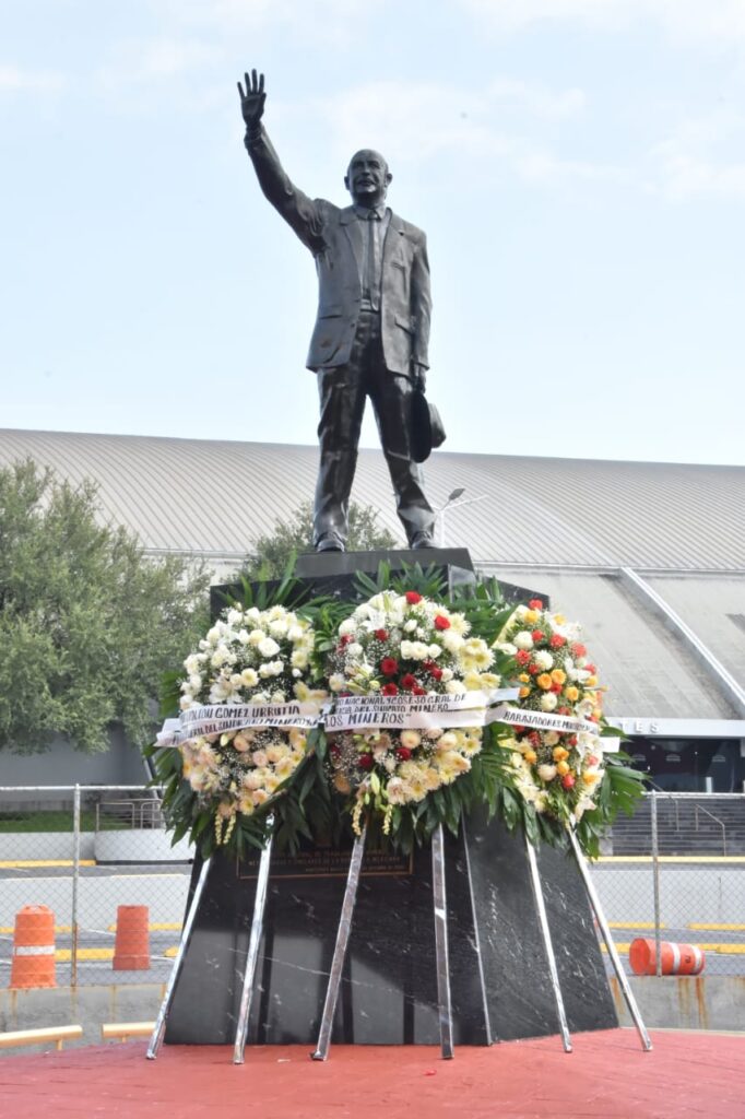 El acto conmemorativo tuvo lugar en el acceso 2 del parque, donde se encuentra la estatua de bronce del dirigente sindical originario de Cadereyta, Nuevo León.
