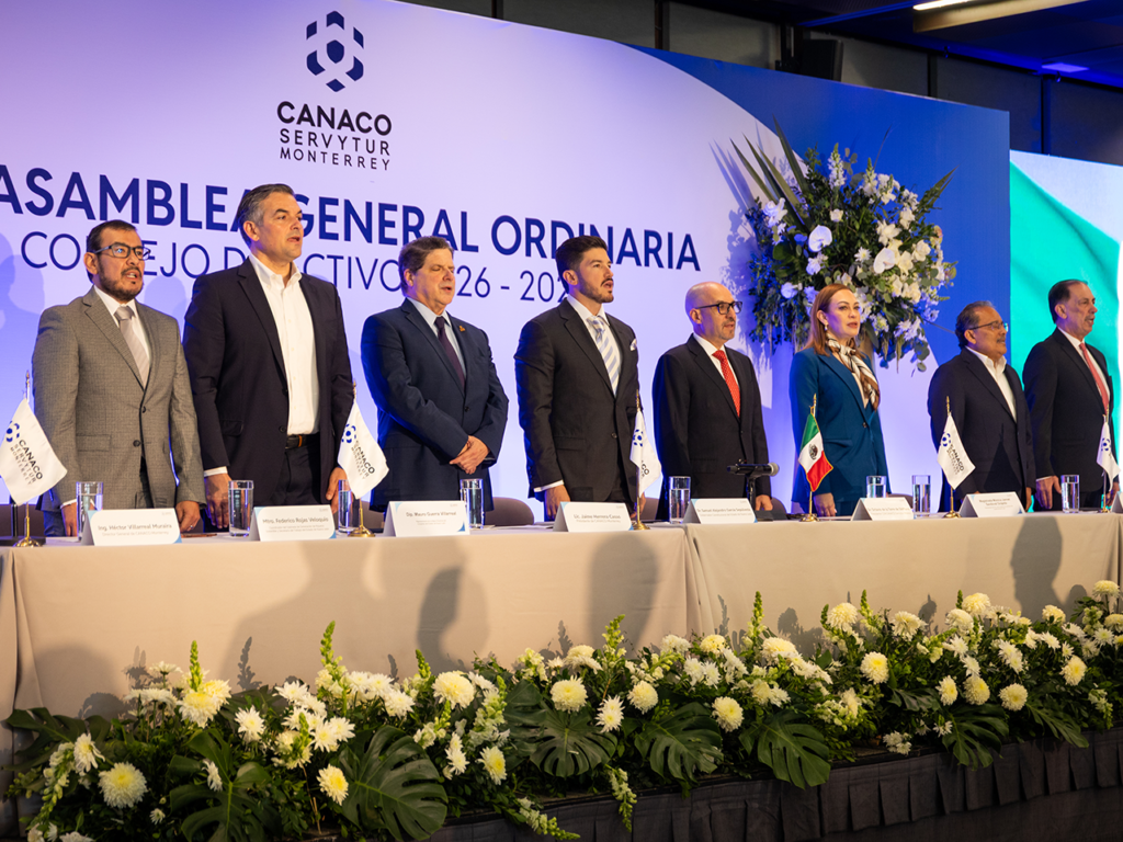 Durante el evento se tomó protesta al nuevo Consejo Directivo 2026-2027 de CANACO Monterrey, encabezado por Jaime Herrera Caso como presidente, junto a un equipo de vicepresidentes y consejeros representantes de la iniciativa privada.