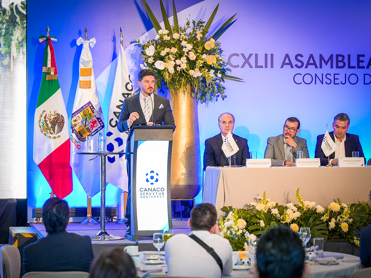 El gobernador de Nuevo León, Samuel García Sepúlveda, hizo un llamado a la iniciativa privada a fortalecer la seguridad en la entidad mediante la integración de sistemas de videovigilancia al C5, durante su participación en la 142 Asamblea General Ordinaria de CANACO SERVYTUR Monterrey.