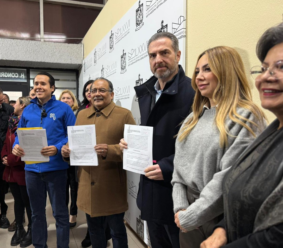 El alcalde de Monterrey, Adrián de la Garza Santos, acudió acompañado por sus homólogos de San Nicolás, Daniel Carrillo, y de Escobedo, Andrés Mijes, quienes respaldaron la propuesta en el contexto del análisis del Presupuesto 2026.